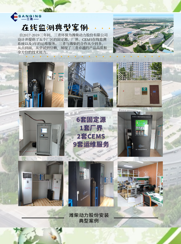 2017-2019三年間,三青環保為濰柴動力股份有限公司設計并提供了5個廠區的6套固定源、1套廠界、2套CMES以及3年運維服務。